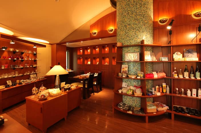 開放感あふれる高い天井が特徴的な本館。ライブラリやショップ、2階には大会議室がございます。ショップではオリジナル商品の他、長崎の銘品を取り揃えております。