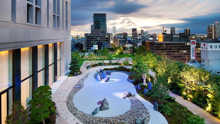 日本伝統の石庭に倣った「天空の庭」で贅沢なひとときをご体験ください。