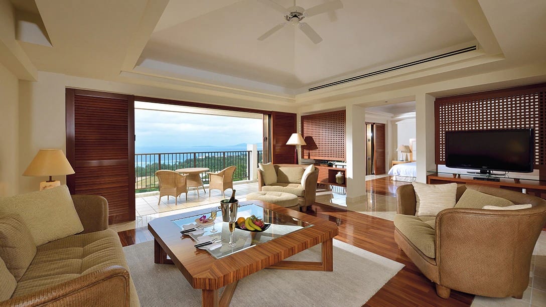 壮大な東シナ海の眺望を独り占めするペントハウススイート。スタイリッシュなインテリアデザインとシンプルな中にも風格ある装飾が、セレスティアルなスイートを印象深く演出します。