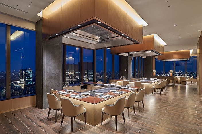 最上階の眺望とともに、特選和牛をはじめとする日本各地のすぐれた食材を味わえます。土と炎をテーマとしたスタイリッシュな店内には、多様に使える個室も完備、広い層に好まれるダイニングシーンを提供します。