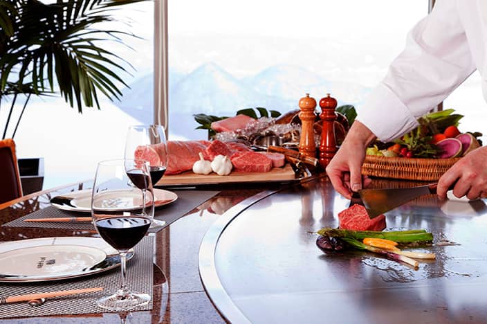 和牛や北海道の新鮮な海の幸はもちろん、全国から厳選した特選素材をお客様の目の前で焼き上げる鉄板焼レストラン。ミシュランガイド北海道2017で1つ星を獲得しました。