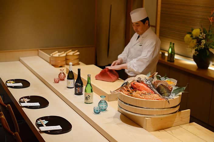 北海道をはじめとする全国の旬の食材から選りすぐり、その時々の最高のネタをお好みやおまかせコースで提供いたします。こだわりの日本酒を握りに合わせてゆったりとくつろぎながらお楽しみください。