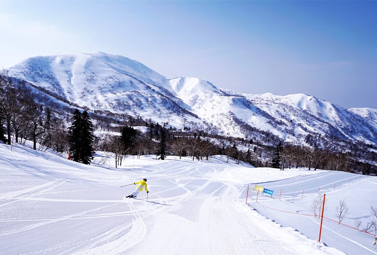 函館空港から車で約1時間の好アクセス。美しい駒ヶ岳、噴火湾、大沼湖、小沼湖を眺めながら滑ることができます。お子様や初心者から上級者まで楽しめるコースとなっています。