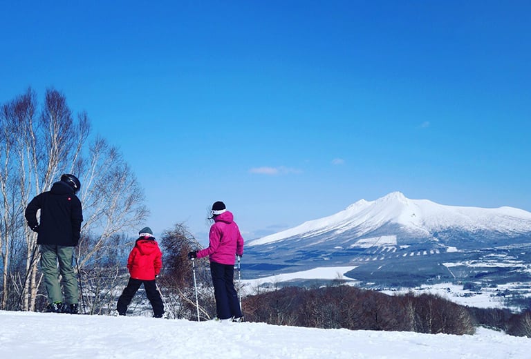 函館空港から車で約1時間の好アクセス。美しい駒ヶ岳、噴火湾、大沼湖、小沼湖を眺めながら滑ることができます。お子様や初心者から上級者まで楽しめるコースとなっています。