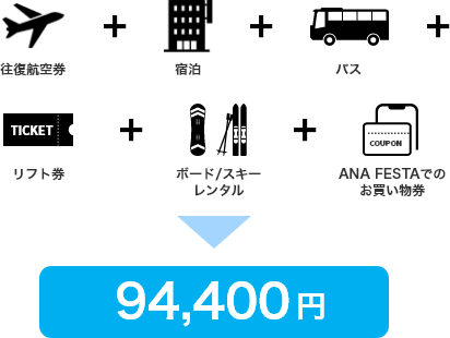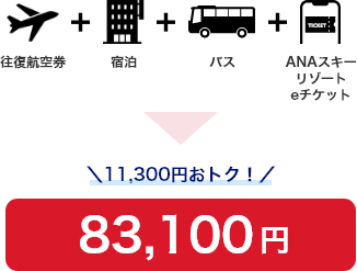航空券・宿泊に加えて、空港からスキーリゾートの往復スキーバスも一緒に予約できるプランをご用意。