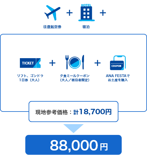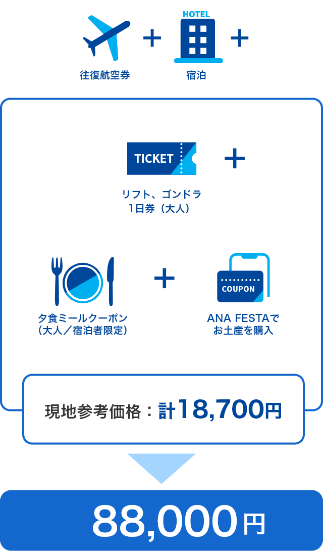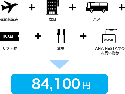旅のスタイルにあわせて航空券と宿泊を自由に組み合わせて作るオリジナルフリープラン。スキーならではのリフト券付きプランなど多数ご用意!