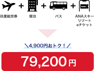 航空券+宿泊と一緒にスキーバスを予約できるので簡単便利!