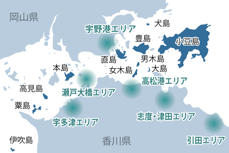 直島 豊島 女木島 男木島 小豆島 大島 犬島 高松港エリア 宇野港エリア
