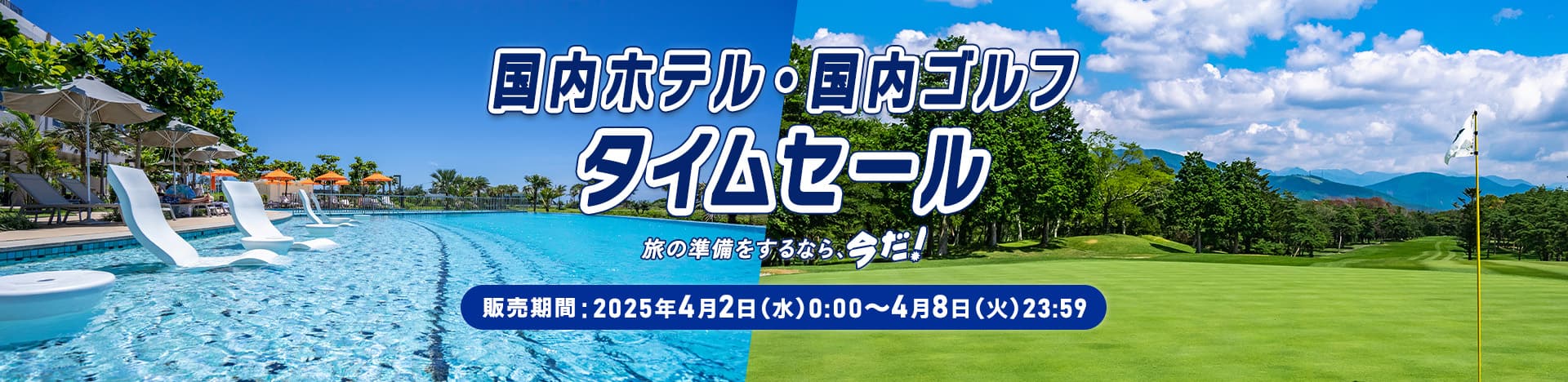 国内ホテルタイムセール 春休みの旅先はもう決めた?おトクな機会をお見逃しなく! 販売期間:2025年12月10日(水)0:00~12月18日(木)23:59 国内ホテルタイムセール 春休みの旅先はもう決めた?おトクな機会をお見逃しなく! 販売期間:2025年12月10日(水)0:00~12月18日(木)23:59