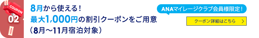 当タイムセールでは「期間限定タイムセールクーポン」を配布しており、宿泊のみ「ANAトラベラーズ ホテル」でご利用いただけます。