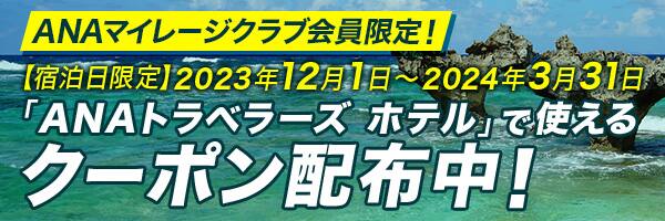 当タイムセールでは「期間限定タイムセールクーポン」を配布しており、宿泊のみ「ANAトラベラーズ ホテル」でご利用いただけます。