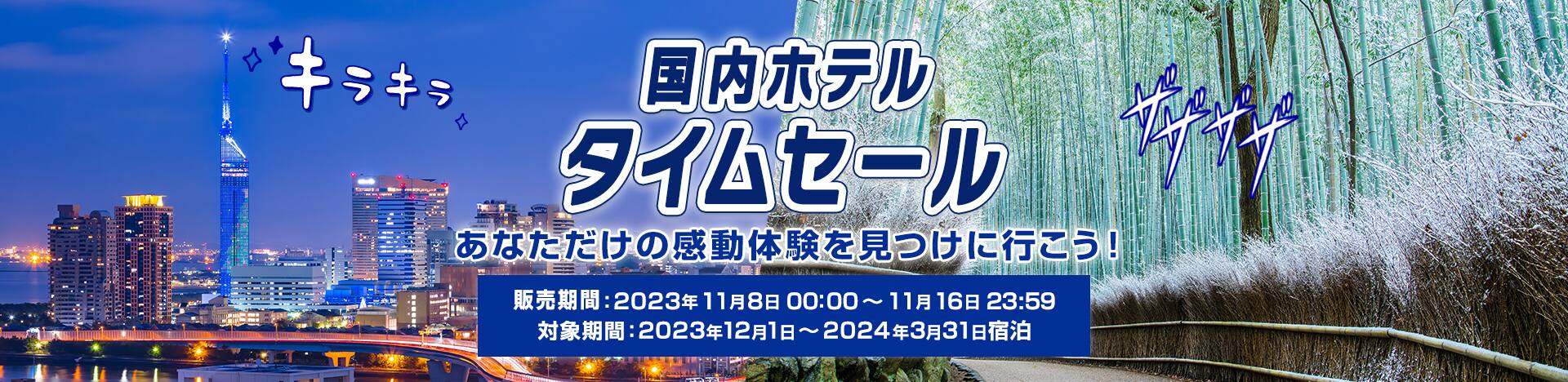 国内ホテルタイムセール 春休みの旅先はもう決めた?おトクな機会をお見逃しなく! 販売期間:2025年12月10日(水)0:00~12月18日(木)23:59 国内ホテルタイムセール 春休みの旅先はもう決めた?おトクな機会をお見逃しなく! 販売期間:2025年12月10日(水)0:00~12月18日(木)23:59