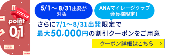 • 販売数には限りがありますので、あらかじめご了承ください。掲載旅行代金や出発日は一例のため、満席・満室の場合は別の出発日で検索ください。またクーポン設定日とは異なる場合があります。
