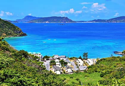 那覇市から西へ約40kmに位置する大小20余りの島々。透明度抜群の「ケラマブルー」と呼ばれる美しい海が魅力で、ダイビングやシュノーケリングの聖地として有名。冬にはホエールウォッチングも楽しめます。