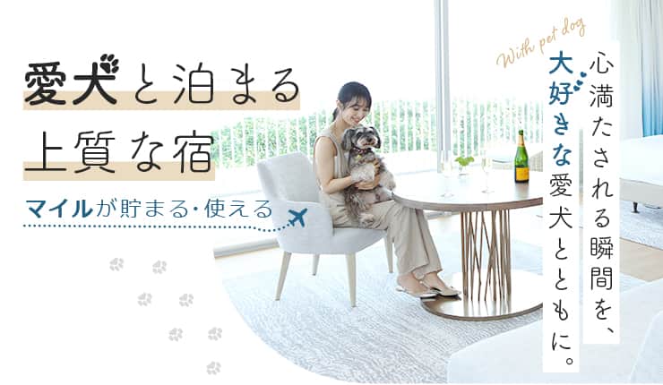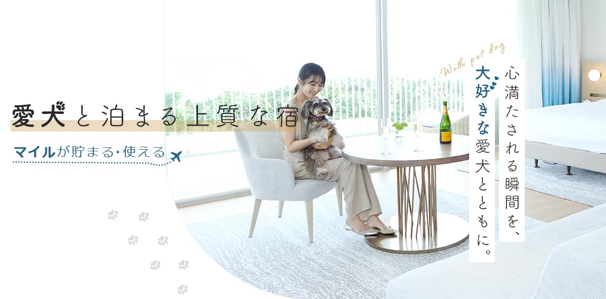 愛犬と泊まる上質な宿 マイルが貯まる・使える 心満たされる瞬間を、大好きな愛犬とともに。 愛犬と泊まる上質な宿 マイルが貯まる・使える 心満たされる瞬間を、大好きな愛犬とともに。