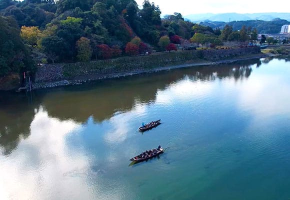 100年以上、人吉・球磨地方の人々に愛されてきた球磨川くだり。日本三急流のひとつの球磨川を、熟練の船頭の巧みな舵さばきで木造船に乗ってくだっていきます。船上からは、四季折々で表情を変える山々、清流に集う野鳥など、人吉の雄大な自然を楽しむことができます。