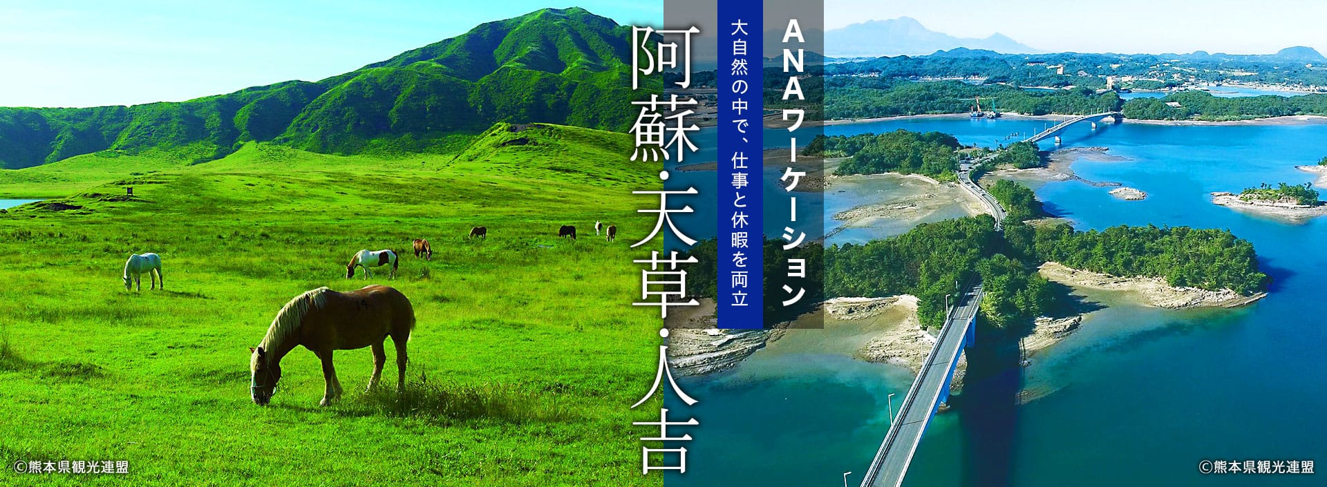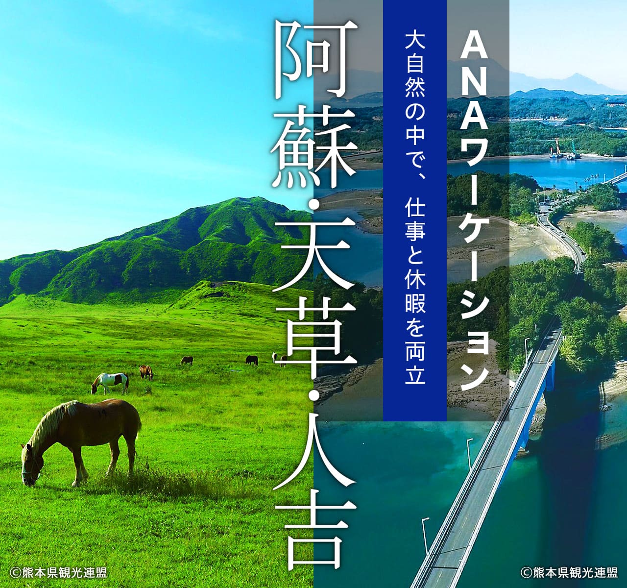 ANAが自信を持っておすすめする阿蘇・天草・人吉のホテルをご紹介します。お好きなエリアでワーケーションをお楽しみください。