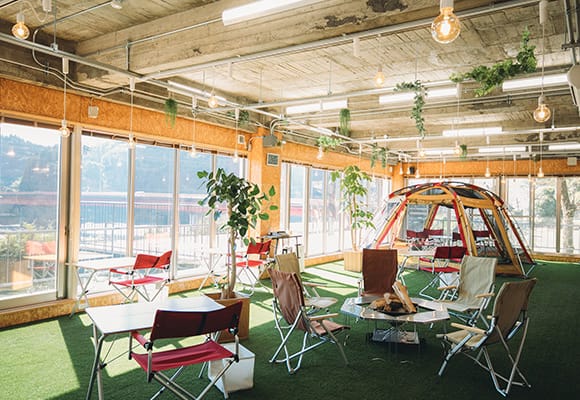 スノーピークビジネスソリューションズが提唱する「osoto」のノウハウを活かし、新しいワークスタイルが体感できる場です。