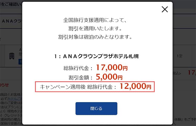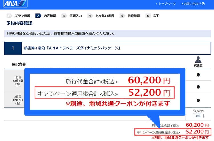STEP.3でキャンペーン適用後の旅行代金が表示されない場合は、全国旅行支援が適用となりません。