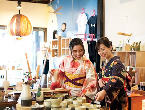 九州の小京都とも呼ばれる天領・日田市。江戸自体の町割りがそのまま残っており、風情ある町並みにはお土産屋さんや食事処、お洒落なカフェなどが並びます。レンタル着物や人力車、手まりづくり・提灯づくり体験などの和文化体験もおすすめです。