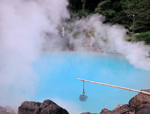 源泉の噴気や熱湯が地上に勢いよく噴出する、7つの地獄をめぐる地獄めぐり。水面が海のようなコバルトブルーの「海地獄」や真っ赤な「血の池地獄」、ボコボコと沸き立つ「鬼石坊主地獄(おにいしぼうずじごく)」など、個性豊かな地獄ばかりです。温泉たまごや地獄プリンなどのグルメ、お土産も充実!