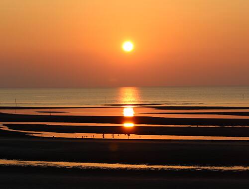 真玉海岸(またまかいがん)では大分県で唯一、水平線に沈む夕陽を目にすることができます。晴れた日の夕暮れには当たり一面が真っ赤に染まり、キラキラとオレンジ色の夕陽が写り、最後には真ん中に日が落ちてゆく…。その幻想的な光景に思わず写真を撮りたくなること間違いなしです。