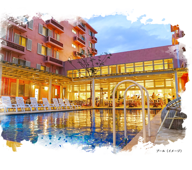 空港から車で10分。宮古島の南岸、ドイツ文化村に隣接した絶好のロケーション。南国の花々が咲くガーデンと明るい色調の館内は、上質のリゾートライフをお約束します。