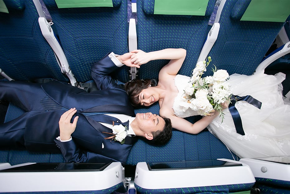 世界最大の旅客機「FLYING HONU」を1機まるごと貸切で、ハワイを感じるウェディングフォトを撮影できます!