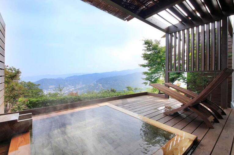相模湾、熱海の街並みを見下ろす絶景と掛け流し温泉に身を委ねる悠久の時。