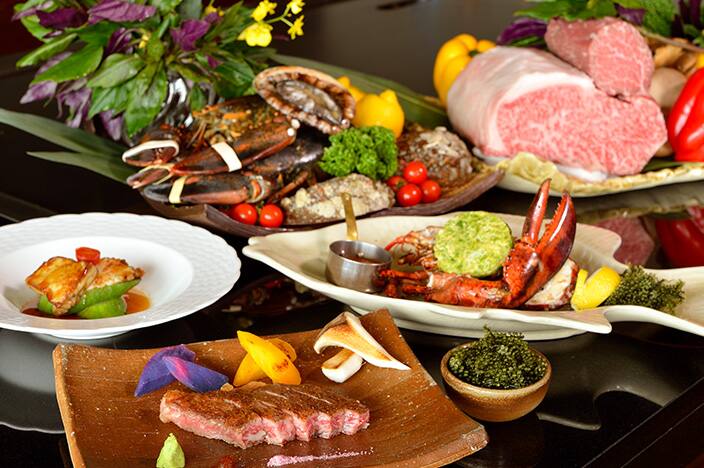 ゲストの目の前でシェフが調理する臨場感と、県産食材を織り交ぜた素材の持ち味をご堪能いただける鉄板焼きスタイルのレストラン。