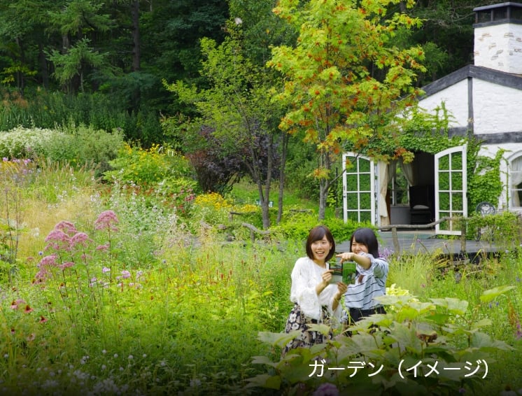 十勝ヒルズ 十勝ヒルズでは、シンボルツリーの白樺とお庭を眺める「ガーデンカフェ」で、ティータイムをお過ごしいただけます。