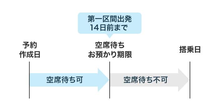 旅程中に空席待ち区間が含まれる場合の期限は、空席待ちをご確認ください。