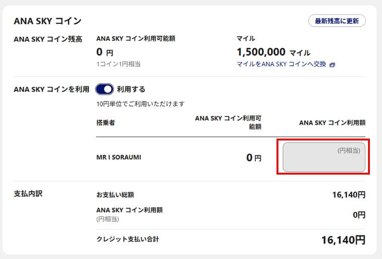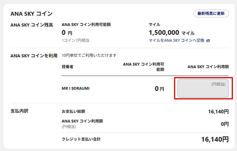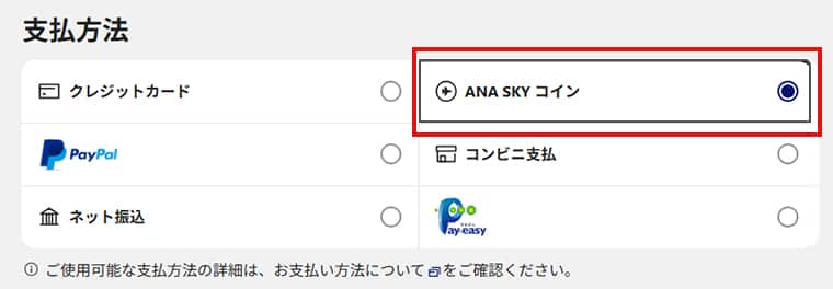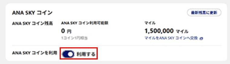 ご購入手続きの際にもマイルからANA SKY コインに交換できます。
