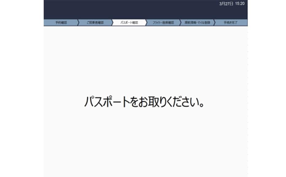 案内が表示されたら、パスポートを取り出してください。