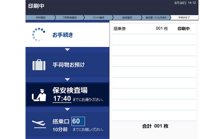 お乗り継ぎチェックインが完了します。
