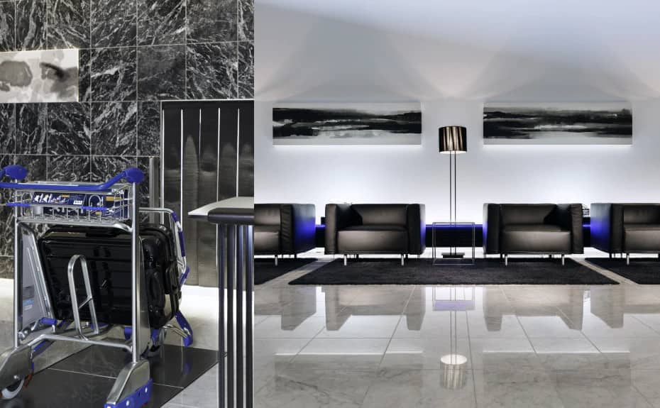 施設内では、パーソナルなカウンターでのチェックイン、お預けの手荷物もカートに載せたままお預かりいたします。お連れ様やお待ち合わせのお客様にはソファもご用意いたしました。