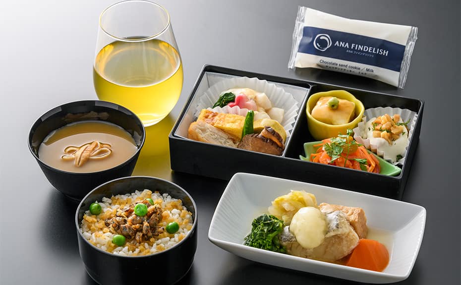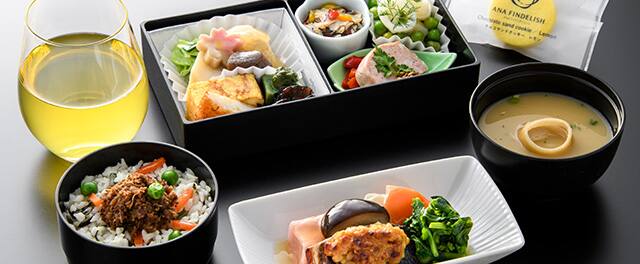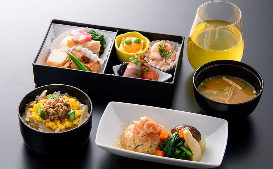 目にも美しい、美味しさを詰めたお食事をご用意して、お客様のご搭乗をお待ちしております。