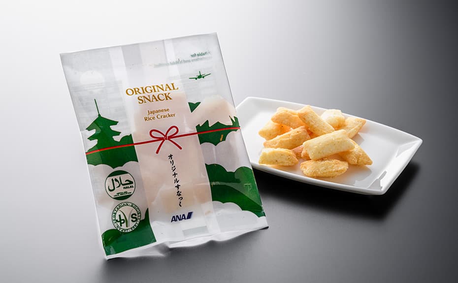 ヴィーガン・ハラール・28品目アレルゲンフリーに対応したANAオリジナルの米菓子をご用意しております。