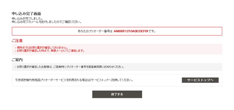 お申し込みされた商品のお取り置き数をご確認いただけます。