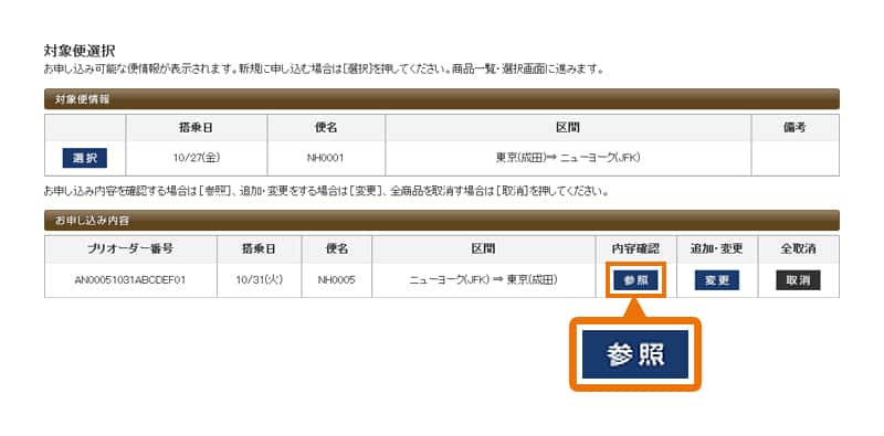 お申し込み内容を確認したい場合は「お申し込み内容」欄の[参照]ボタンを選択してください。