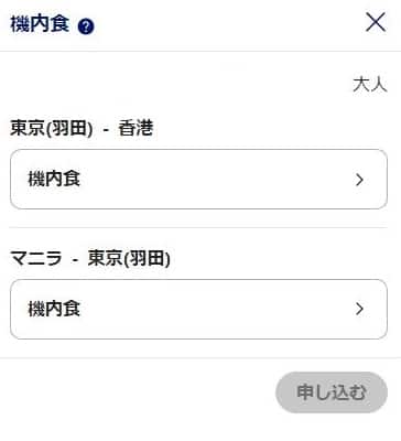 お申し込み後は会員ページにログイン後、予約ページにて特別機内食のご確認が可能です。