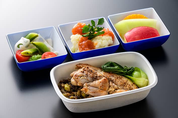 お客様の健康をサポートするお食事を各種ご用意しています。ご自身の食習慣に寄り添ったお食事を、機内でも是非ご賞味ください。