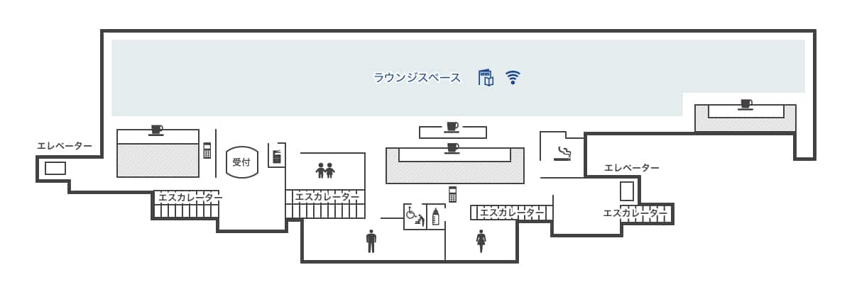 21:00以降の出発便をご利用のお客様は本館北ラウンジをご利用ください。