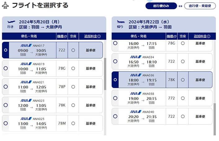 まず、行きと帰りのフライトと初日の宿泊施設の基本予約を作成します。中日の宿泊施設は後から追加します。