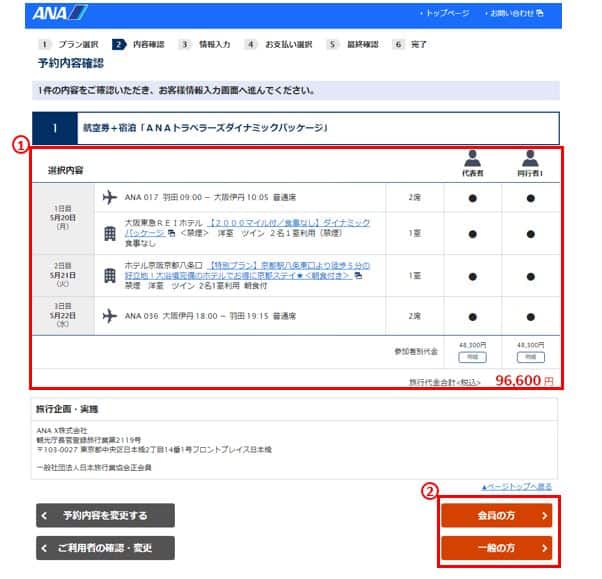 確認し終えたらページ右下にある「会員の方」「一般の方」どちらか該当するボタンをクリックし、本人情報入力、支払選択まで進んでいただき、予約完了となります。