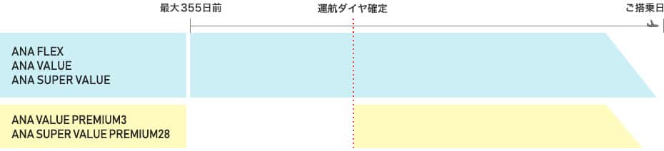「ANA VALUE PREMIUM3」、「ANA SUPER VALUE PREMIUM28」は、年2回、運航ダイヤ期間ごとに一斉発売を行います。
