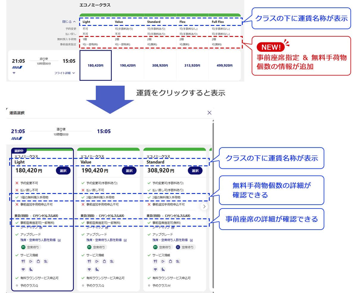 ANAキャリア特別運賃 エコノミークラス 「Light」「Value」 |