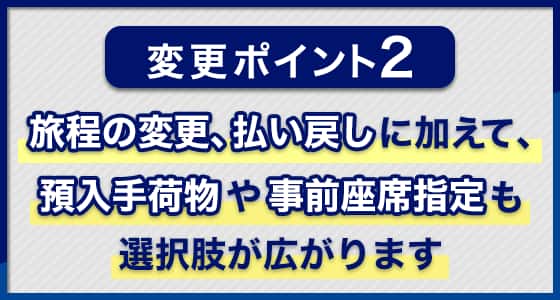 運賃規則を一部改訂し、無料手荷物許容量を「2個」から「1個」へと変更します。 | 2024年11月1日以降ご購入 かつ2024年11月1日以降ご出発分 |