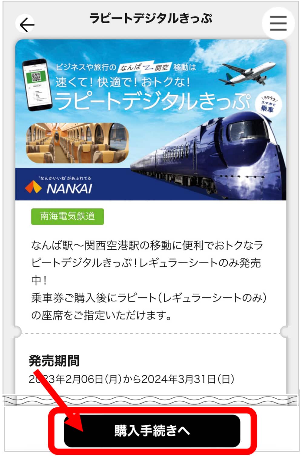 「ラピートデジタルきっぷサイト」へ遷移します。