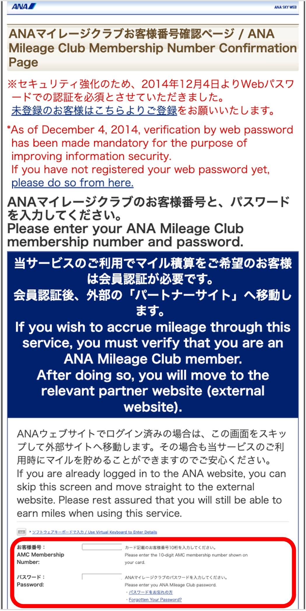 ANAマイレージクラブお客様番号をご入力される際、間違いのないようご注意ください。